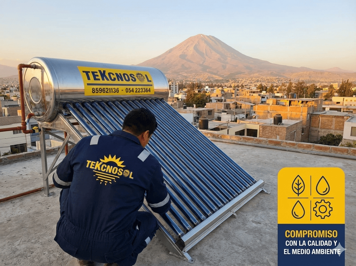 «Desde que instalamos la terma Tekcnosol, nuestro recibo de luz ha bajado casi un 40%. La inversión valió la pena totalmente. Ahora tenemos agua caliente para bañar a mis hijos temprano antes del colegio sin preocuparnos por el gasto.» — Roberto C. | Cerro Colorado, Arequipa